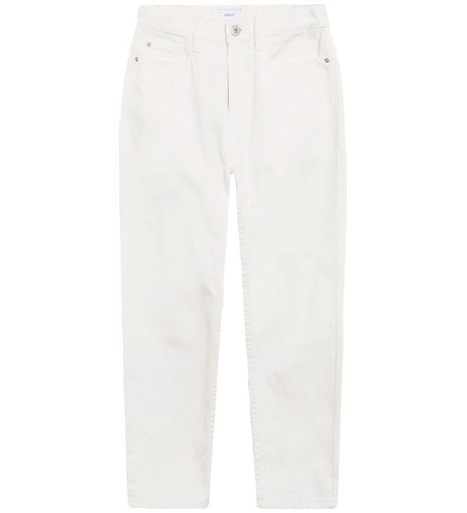 Disse Grunt Jeans - Mom i hvid er den ideelle tilføjelse til enhver kvindes garderobe. Med deres tidløse design og høje talje er de både stilfulde og komfortable, hvilket gør dem perfekte til daglig brug eller særlige lejligheder.