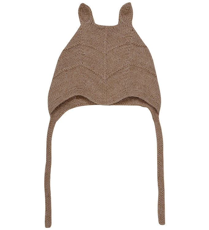 Huttelihut Babyhjelm m. Ører - Alpakauld - Strik - Camel Melange