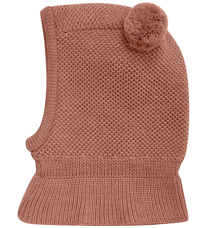 Huttelihut Elefanthue - Uld - Strik - 2-lags - Burlwood m. Kvast