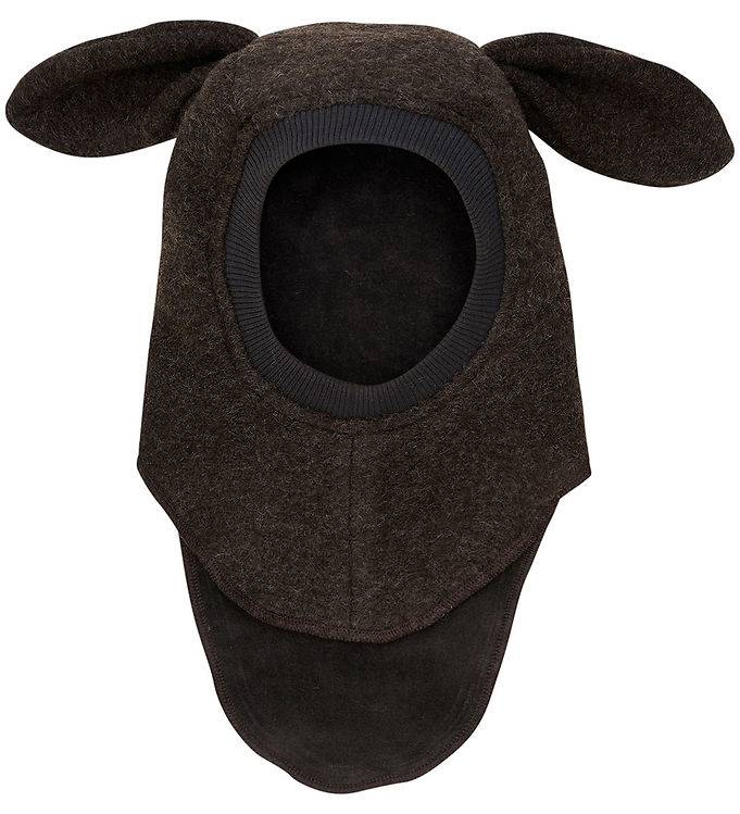 Huttelihut Elefanthue - Uld - 2-lags - Mørkebrunmeleret m. Ører