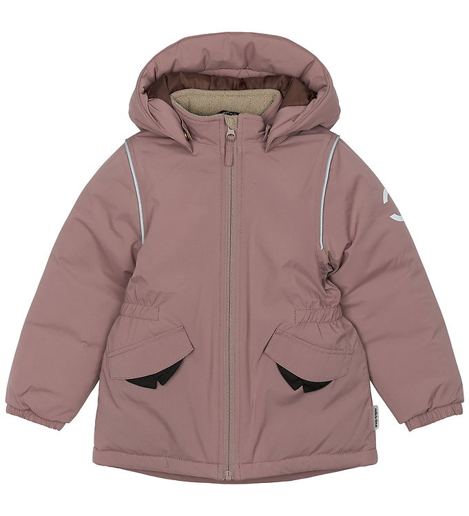 Mikk-Line Vinterjakke i farven Twillight Mauve: er den perfekte jakke til de kolde måneder. Med fokus på både stil og funktionalitet, tilbyder denne jakke en ideel løsning til børn, der skal holde sig varme og komfortable i vinterens kulde.