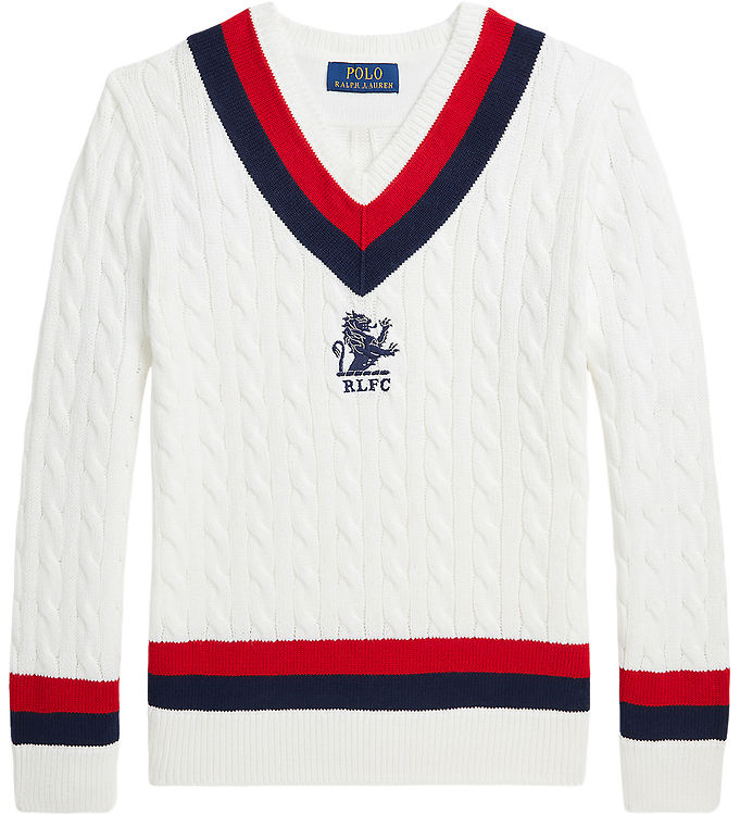 Polo Ralph Lauren Bluse - Strik - Deckwash White m. Navy/Rød