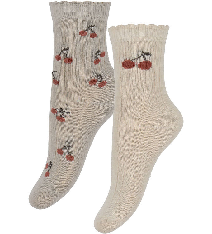 Minymo Strømper - 2-pak - Light Taupe m. Kirsebær