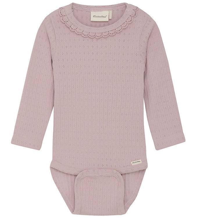 Minymo Body l/æ - Rib - Pointell - Burnished Lilac m. Hulmønster