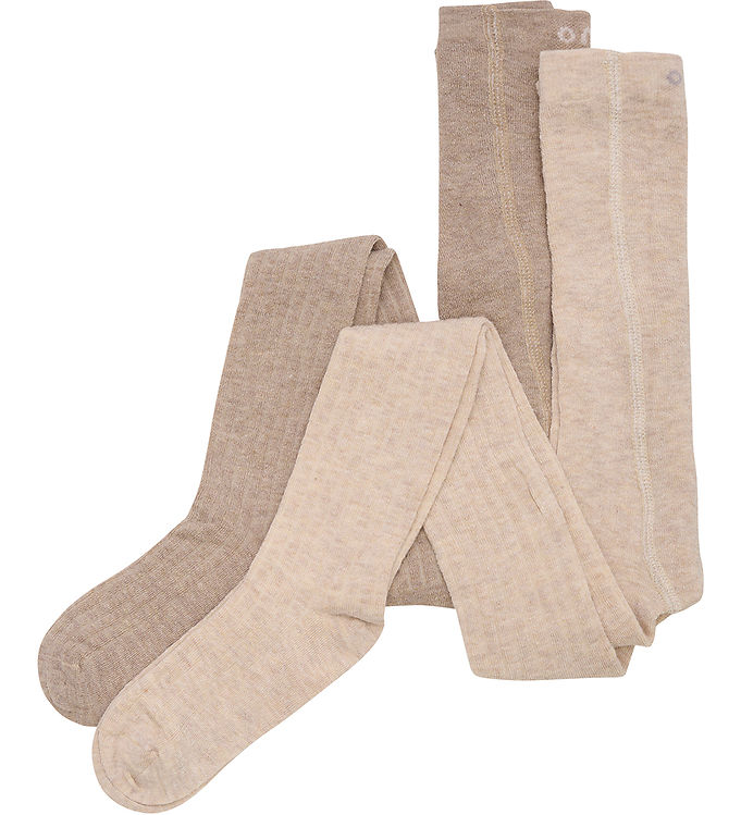 Minymo Strømpebukser - 2-pak - Rib - Noos - Silver Mink Melange