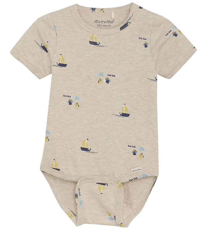 Minymo Body k/æ - Light Beige Melange m. Sejlbåde