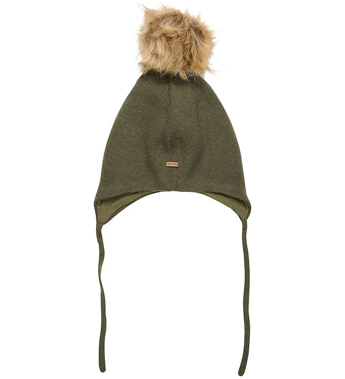 Minymo Hue - Uld/Bomuld - Olive Night m. Imiteret Pels