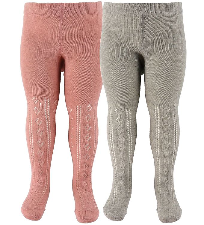 Minymo Strømpebukser - 2-pak - Lysegråmeleret/Rosa m. Hulmønster