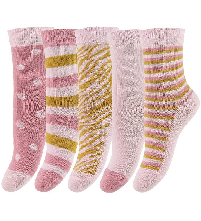 Minymo Strømper - 5-pak - Rosa m. Striber