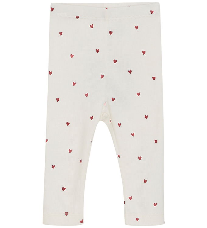 Minymo Leggings - Rib - Eggnog m. Hjerter