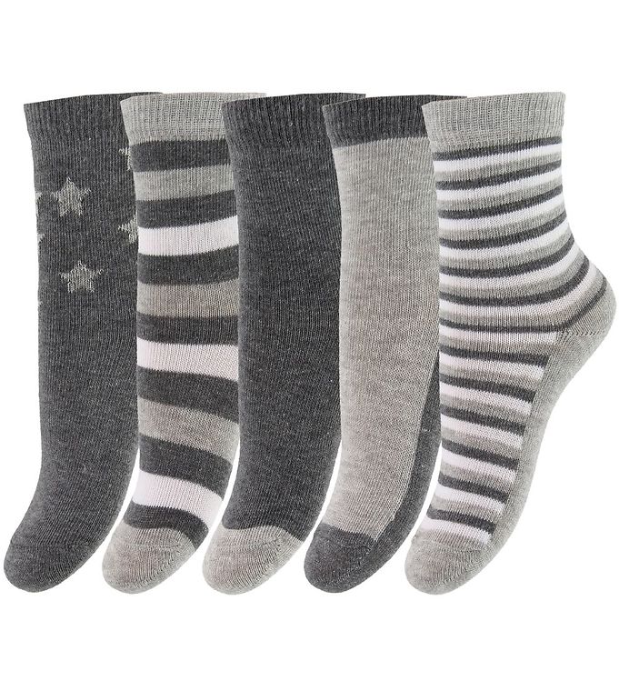 Minymo Strømper - 5-pak - Lys Gråmeleret m. Striber
