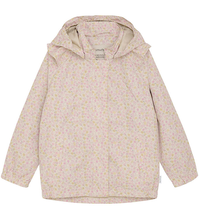 Jakken er fremstillet af høj kvalitet, vandafvisende materiale, der holder dit barn tørt, selv når vejret er gråt og vådt. Den lyse peach whip farve med farverige blomster giver et livligt og glædeligt udtryk, som både børn og forældre vil elske.