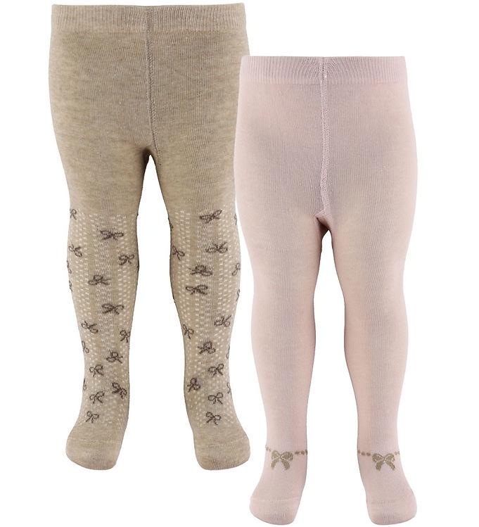 Minymo Strømpebukser - 2-pak - Shell/beige m. Sløjfer