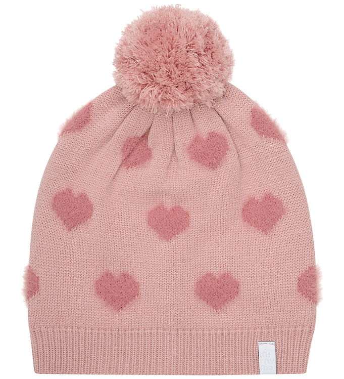 Huen er lavet af blødt og strækbart materiale, hvilket gør den behagelig at have på hele dagen. Den delikate farve Misty Rose i kombination med de søde hjerter og den fine kvast giver et yndigt udtryk, der helt sikkert vil blive et hit hos både børn og forældre.