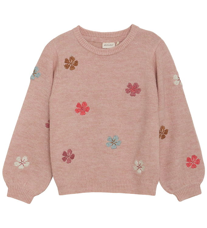 Minymo Bluse - Strik - Misty Rose m. Blomster