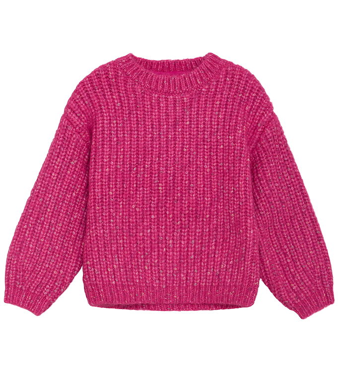 Blusen er lavet af blødt og åndbart materiale, der sikrer, at dit barn føler sig godt tilpas hele dagen. Den strikkede tekstur giver et unikt look, mens den livlige fuchsia farve tilføjer et friskt pust til enhver garderobe. Den er let at kombinere med bukser, nederdele eller shorts, hvilket gør den til et alsidigt valg.