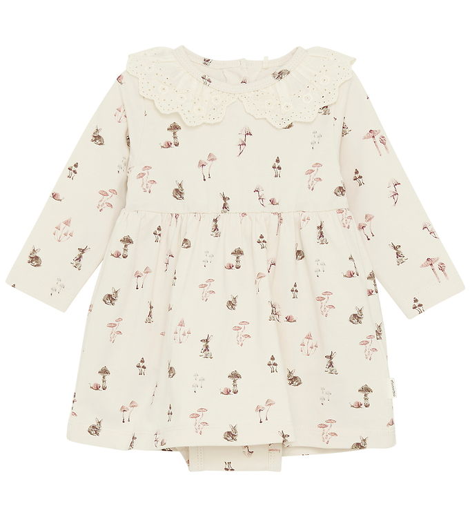 Uanset om det er til daglig brug eller en særlig lejlighed, vil denne kjolebody hurtigt blive en favorit i dit barns garderobe. Kombiner den med leggings eller strømpebukser for et fuldendt look. Vælg Minymo Kjolebody - AOP - Sandshell og giv dit barn en stilfuld og komfortabel påklædning.