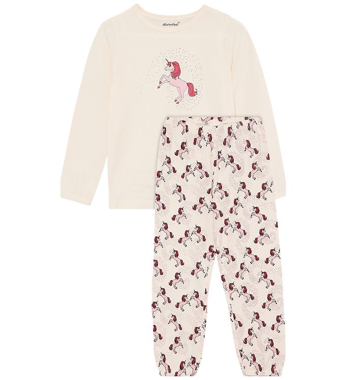 Minymo Nattøj - 2-delt - White Swan er ideelt til både varme og køligere nætter, da det giver en behagelig temperatur under søvnen. Dine børn vil elske at iføre sig dette nattøj, og du vil værdsætte dets kvalitet og holdbarhed. Gør sengetiden til en fest med dette smukke nattøj!
