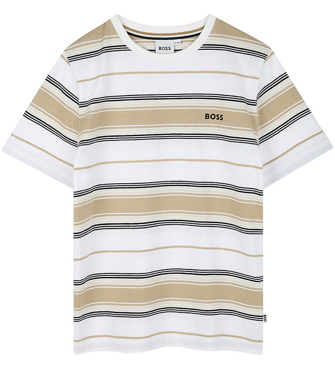 Forkæl dig selv med en premium BOSS T-shirt i en elegant Stone/Off White farve. Denne T-shirt kombinerer stil og komfort, hvilket gør den til et ideelt valg til både hverdag og fest.