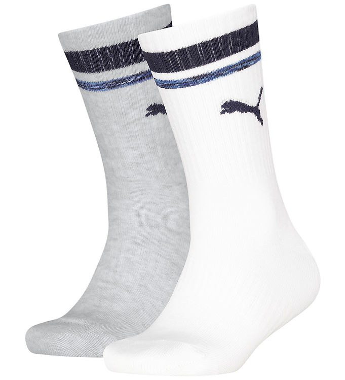 Puma Strømper - Kids Crew - 2-pak - Hvid/Grå/Blå
