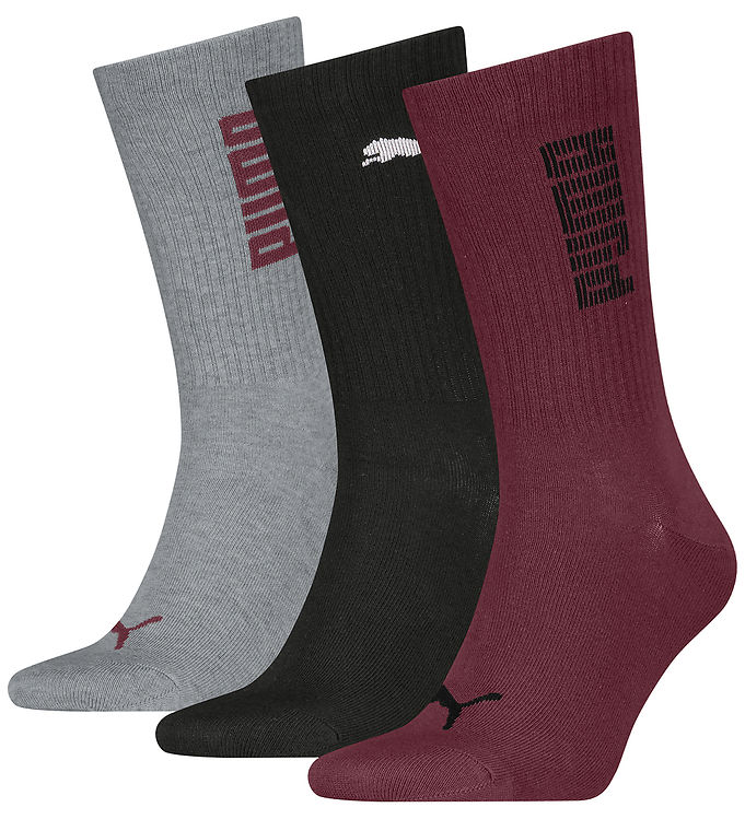 Puma Strømper - Regular Crew - 3-pak - Burgundy/Sort/Grå