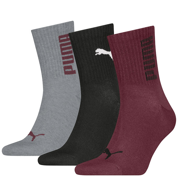 Puma Strømper - Unisex RIB Logo Short - 3-pak - Burgundy/Sort/Gr