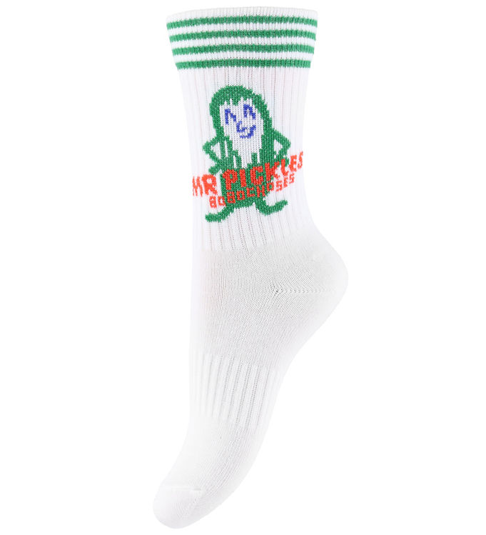 Strømperne er lavet af bløde, åndbare materialer, der sikrer optimal komfort hele dagen. Den elastiske kant holder strømperne sikkert på plads, så de ikke glider ned, mens dit barn leger og udforsker verden. Det unikke design med Mr Pickles tilføjer et sjovt og legende element til dit barns påklædning.