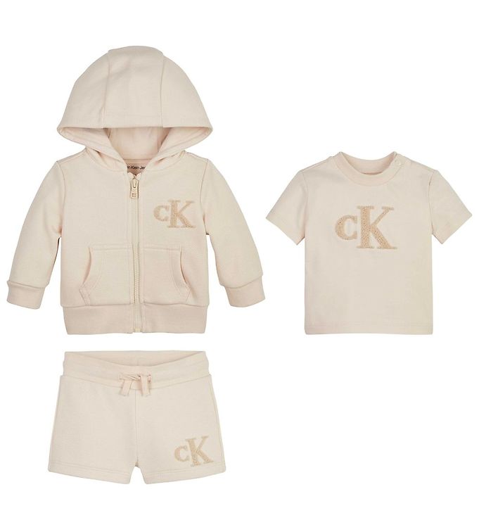 Calvin Klein Sæt - Cardigan/T-shirt/Shorts - Whitecap Gray