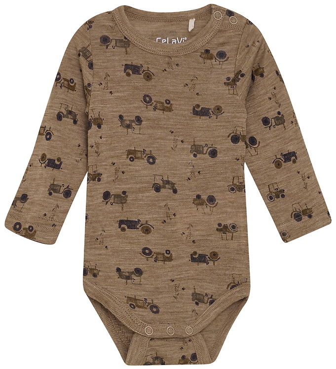 CeLaVi Body l/æ - Uld - Cacoa Creme m. Traktorer