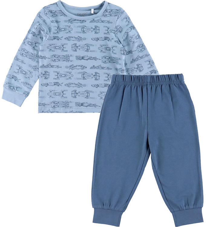 CeLaVi Nattøj - 2-delt - Ashley Blue m. Racerbiler