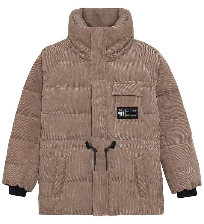 Få dit barn klar til de kolde dage med Color Kids dynejakke i fløjl, i den smukke farve String - Fossil. Denne dynejakke kombinerer både stil og funktionalitet, hvilket gør den til det ideelle valg for aktive børn.