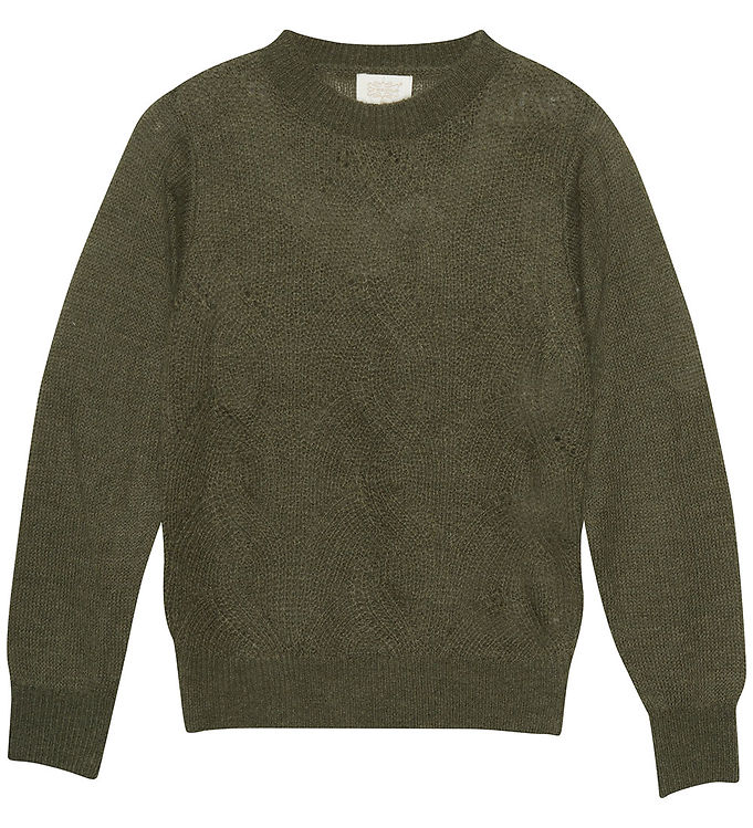 Creamie Bluse - Strik - Olive Night m. Hulmønster