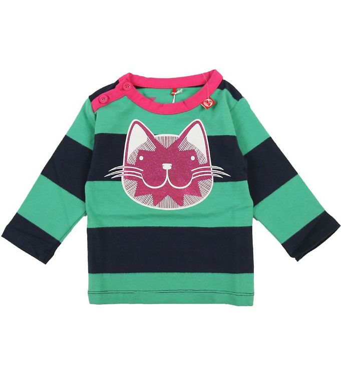 Danefæ Bluse - Grøn/Marine m. Pink Glitter Kat