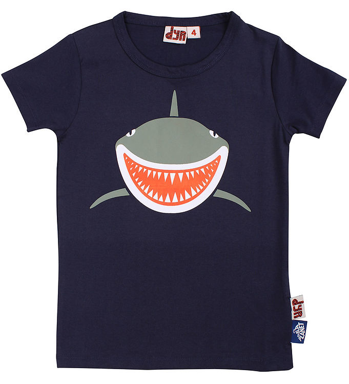 Med sit flotte hajmotiv på en dyb navy baggrund, tilføjer denne T-shirt et sjovt og legende element til dit outfit. DYR-Cph er kendt for sine høje standarder inden for materialer og design, hvilket gør denne T-shirt til et ideelt valg til både hverdag og fest.