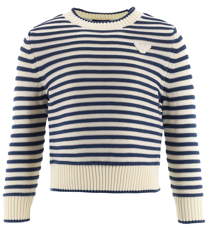 Emporio Armani Bluse - Strik - Hvid/Blåstribet