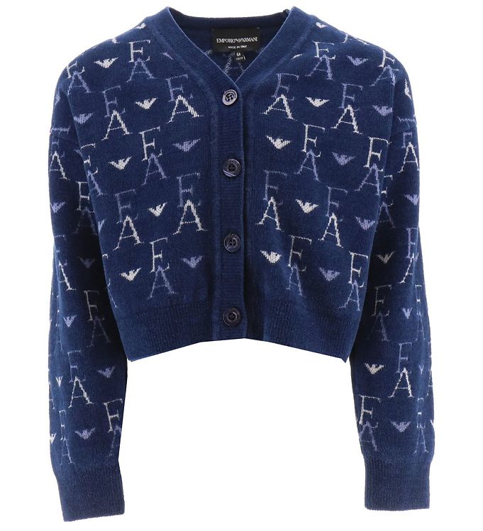 Emporio Armani Cardigan - Cropped - Strik - Blå med Logoer