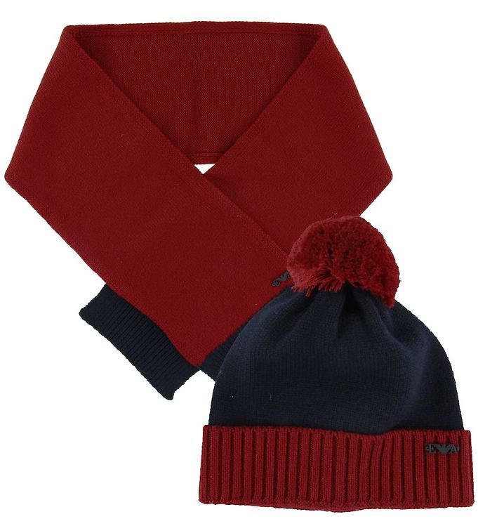 Emporio Armani Gaveæske - Strikhue/Tørklæde - Uld - Rød/Navy