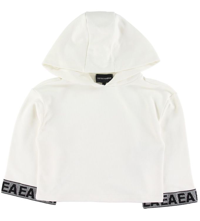 Emporio Armani Hættetrøje - Crop - Hvid m. Pailletter