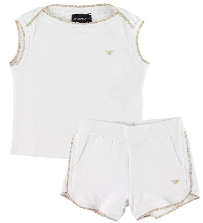 Emporio Armani Sæt - T-shirt/Shorts - Hvid m. Guldglimmer
