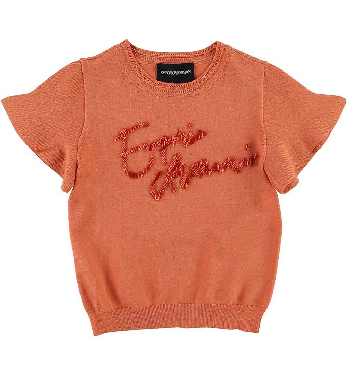 Emporio Armani T-shirt - Strik - Koralrød m. Pailletter