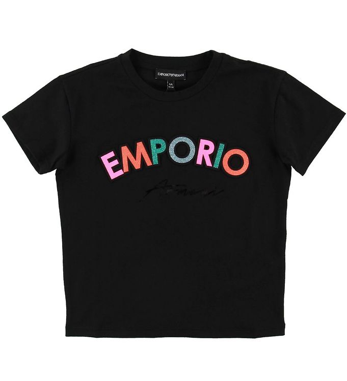 Emporio Armani T-shirt - Sort m. Glimmer/Patches
