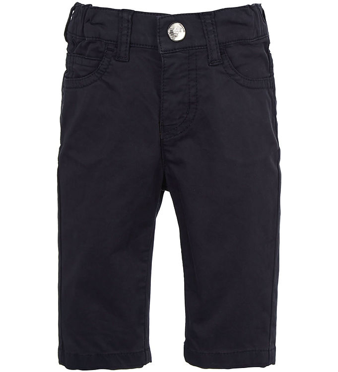 Forny dit garderobe med de elegante Emporio Armani bukser i en dyb Blue Navy farve. Disse bukser kombinerer stil og komfort, hvilket gør dem til et ideelt valg til både arbejde og fritid.