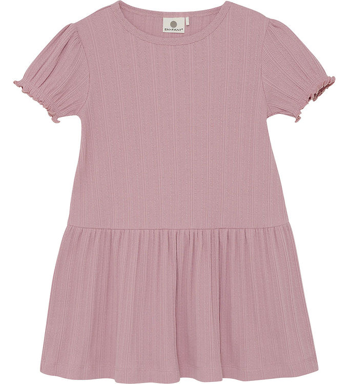 Kjolen er lavet af blødt og åndbart materiale, hvilket sikrer, at dit barn føler sig godt tilpas hele dagen. Den fine pointelle-struktur tilføjer et elegant touch, der gør kjolen unik. Med sin lette pasform giver den frihed til bevægelse, så dit barn kan lege og udforske uden besvær.