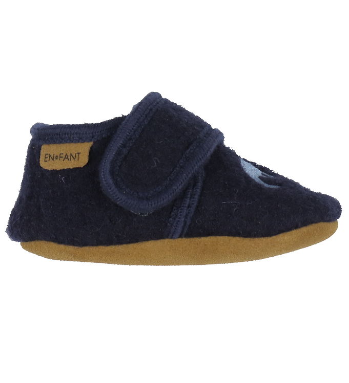 Giv dit barn den bedste komfort med En Fant Hjemmesko i uld. Disse smarte hjemmesko i en dyb navy farve prydes af sjove dinoer, der vil glæde både børn og forældre. Hjemmeskoene er designet til at holde små fødder varme og komfortable, samtidig med at de tilbyder et godt greb på glatte overflader.
