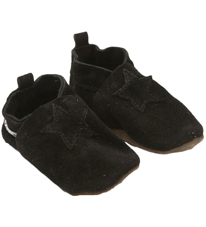 Skindfutterne er lavet af blødt ruskind, der sikrer en behagelig pasform og en let følelse. Den fleksible sål giver optimal bevægelsesfrihed, så dit barn kan lege og udforske uden begrænsninger. Det stilrene design i sort gør dem nemme at kombinere med forskellige outfits, hvilket gør dem perfekte til både hverdag og fest.