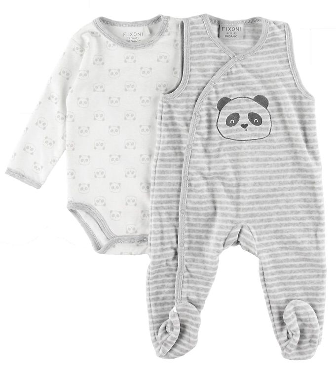 Fixoni Sparkedragt m. Body l/æ - Gråmeleret m. Panda/Striber