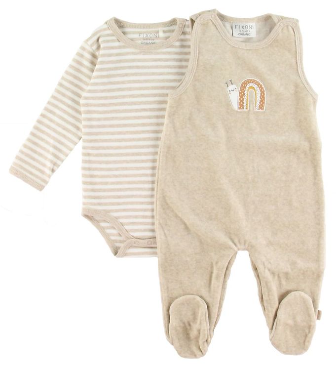 Fixoni Sparkedragt m. Body l/æ - Sandmeleret m. Striber/Snegl