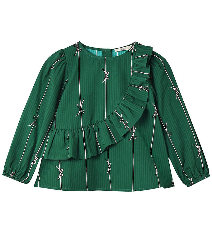 Fliink Bluse - Bowie - Hunter Green Bow AOP