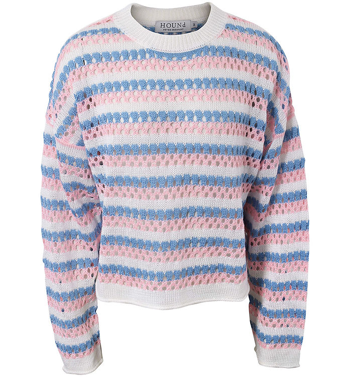 Hound Bluse - Strik - Rosa/Hvid/Blåstribet m. Hulmønster