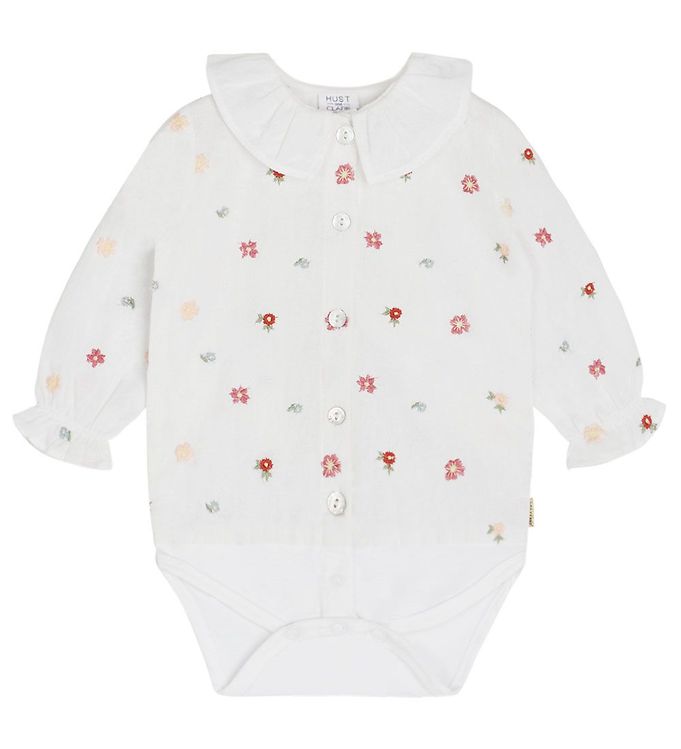 Hust and Claire Skjortebody l/æ - Bernadette - Hvid m. Blomster